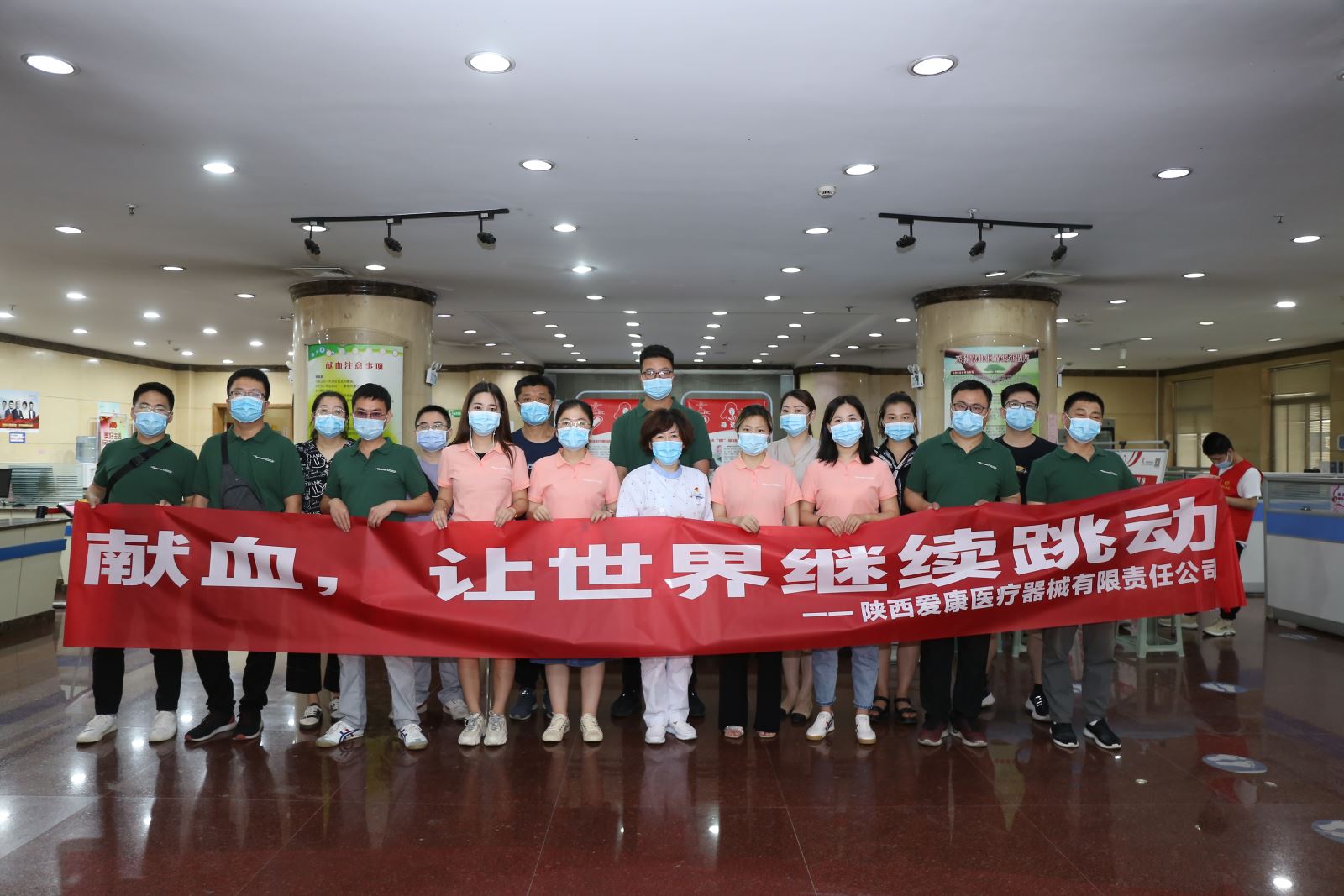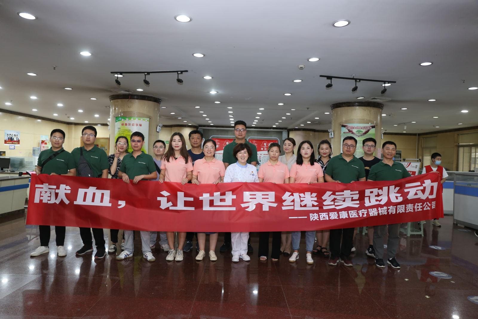 單,然后有序進行咨詢、檢查、化驗到最終的成功獻血。本次獻血活動陜西愛康醫療器械有限責任公司共組織15人參加,成功獻血10人,